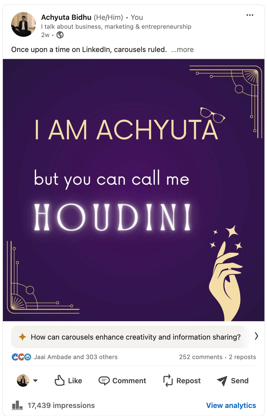 My average LinkedIn post has 150 likes, 120 odd comments and the impressions are around 3,000-4,000.
